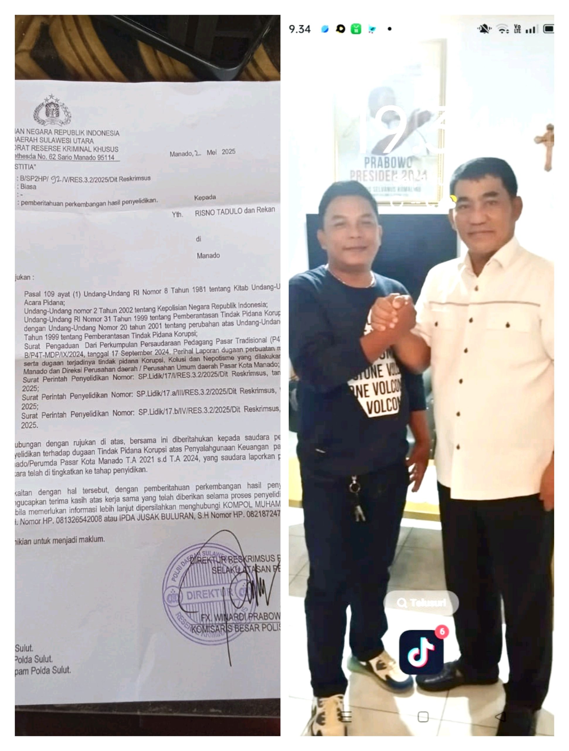 Menyoal tentang Laporan tertulis ke pihak Polda Sulut, Ketua Forum ( P4T ) @ Risno. Tadulo, yang di dampingi oleh Sekretaris Umum, @ Abdul. Kahar. Tane, bahwa saat ini proses Laporan tersebut Sementara berproses, dan sudah memasuki babak baru pada tingkat ” Penyidikan “di Pihak POLDA SULUT.