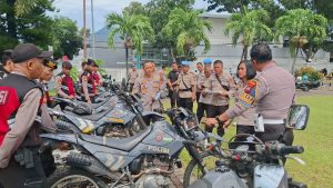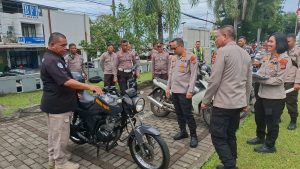 Bitung, GlobalNews Sulut- Kapolres Bitung AKBP Albert Zai, SIK., MH, bersama Wakapolres dan Pejabat Utama (PJU) Polres Bitung melakukan pemeriksaan kesiapan dan kelayakan kendaraan dinas roda dua operasional.