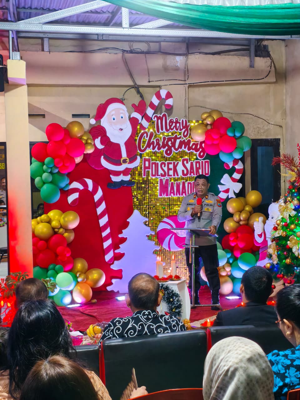 Penegasan tersebut di sampaikan Kapolsek sario dalam menggelar Ibadah menyambut Natal Yesus Kristus Oikumene di Mapolsek Sario, Kelurahan Sario Utara, Kecamatan Sario, Kota Manado yang berlangsung khidmat bersama Stake Holder/Mitra Polsek Sario dengan Tema “Kasih yang Mempersatukan” (Kolose 3:14), Kamis (18/12/2025).