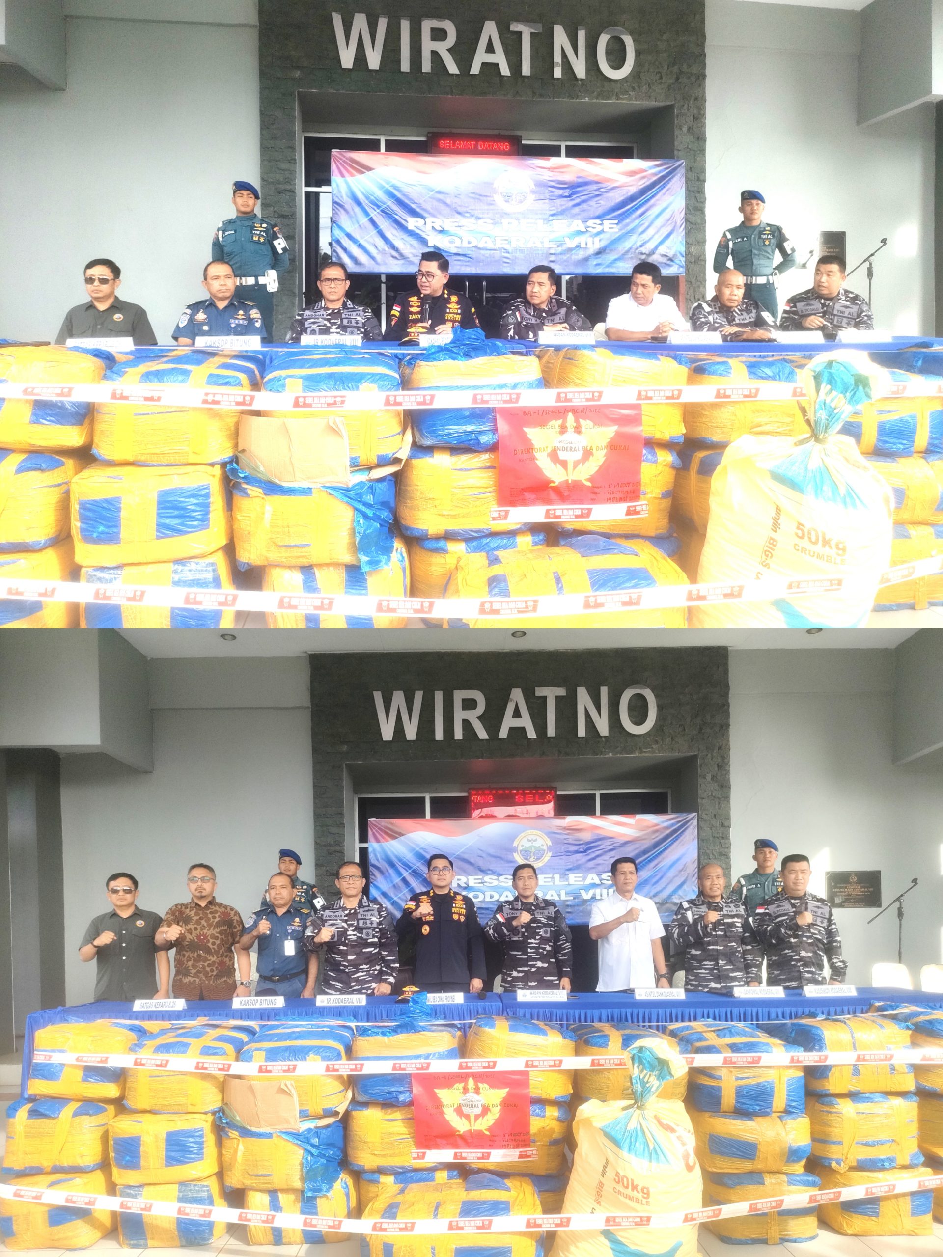 MANADO, GlobalNews Sulut- Penangkapan 1450 Kg Sianida di Pelabuhan ASDP Kota Bitung yang diselundupkan dari Filipina akhirnya dibeberkan Wadan Kodaeral VIII Manado dalam Press Release yang digelar Kodaeral VIII Jumat (06/03/2026).